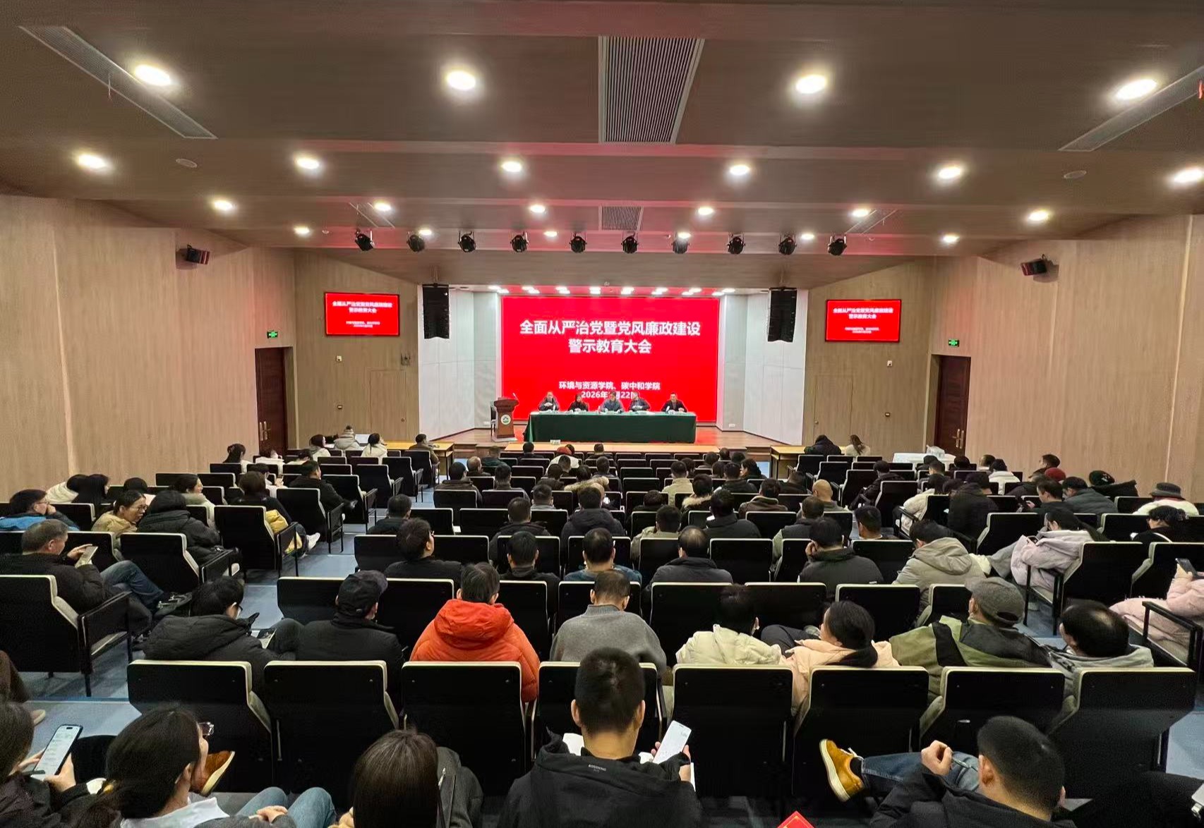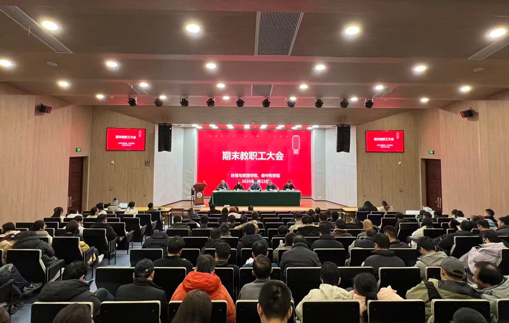 2026年1月22日,环资院、碳中和学院在学三国际厅召开教职工大会。学院党政领导班子成员、全体教职工参加会议。会议由学院党委书记侯锡铭主持。